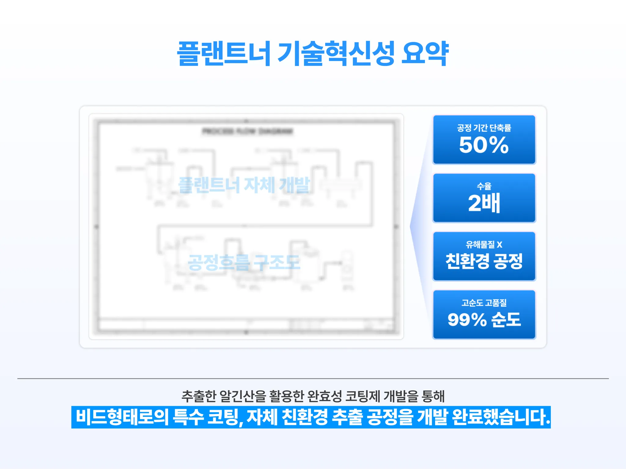 플랜트너는 공정 단계를 57% 단축, 유해 약품은 제거하고 사용한 용매의 90%를 회수할 수 있는