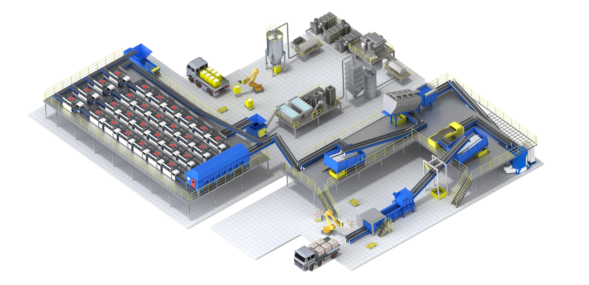 에이트론은 딥 러닝 AI 기반 폐기물 광학선별로봇으로, 약 260만 건의 실제 선별장 생활폐기물 데이터를 학습했습니다. 정확도 99.3%로 분당 최대 96개의 폐기물을 선별합니다. 재활용 대상 폐기물 7종(PET, PE, PS, PP, 유리, 캔, 기타 등에서 색상과 재질을 기준으로 43종까지 선별이 가능합니다. 무인 로봇자원회수센터는 30대 이상의 에이트론과 순환형 컨베이어 벨트로 구성해, 선별에 집중한 설비로 재활용률을 2배 이상 높이는 역할을 기대하고 있습니다.