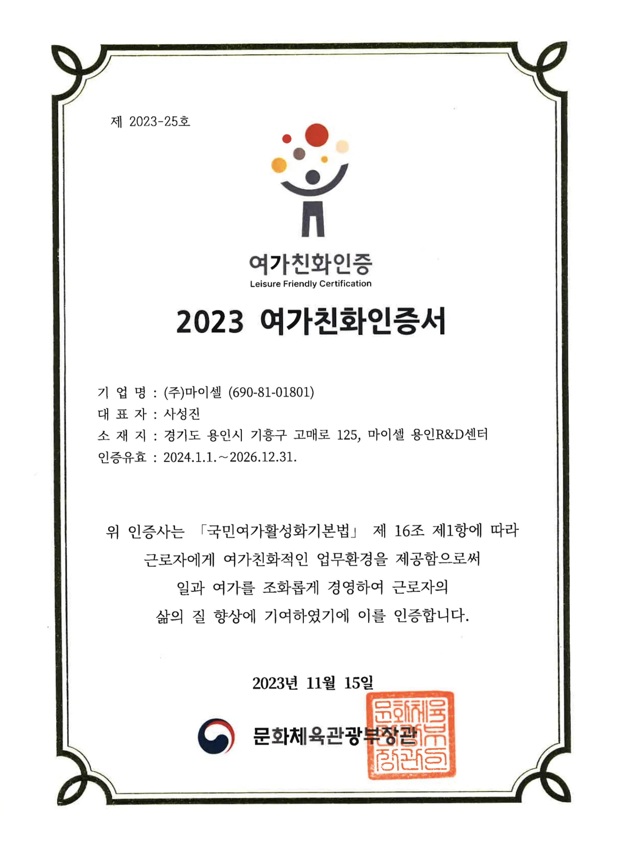 문화체육관광부 여가친화인증서 취득, 지역문화진흥원 원장상 수상
