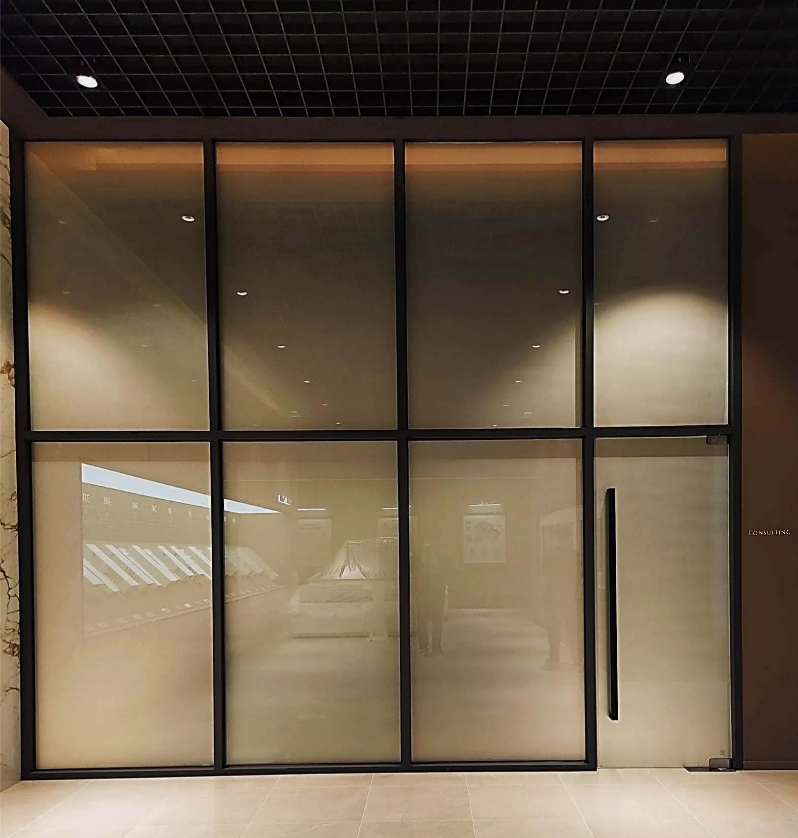 유리에 필름 적용 시 투명/불투명 상태 전환이 가능하며, 외부 시야를 차단하거나 들어오는 빛의 투과도 조절이 가능합니다.