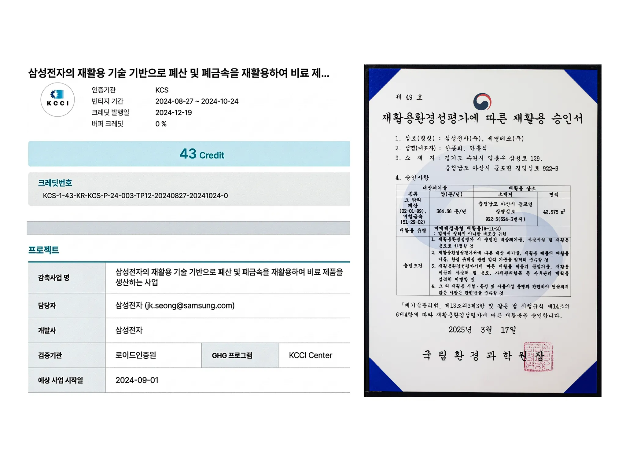 (탄소감축 크레딧 발급과 재활용환경성 평가 완료)