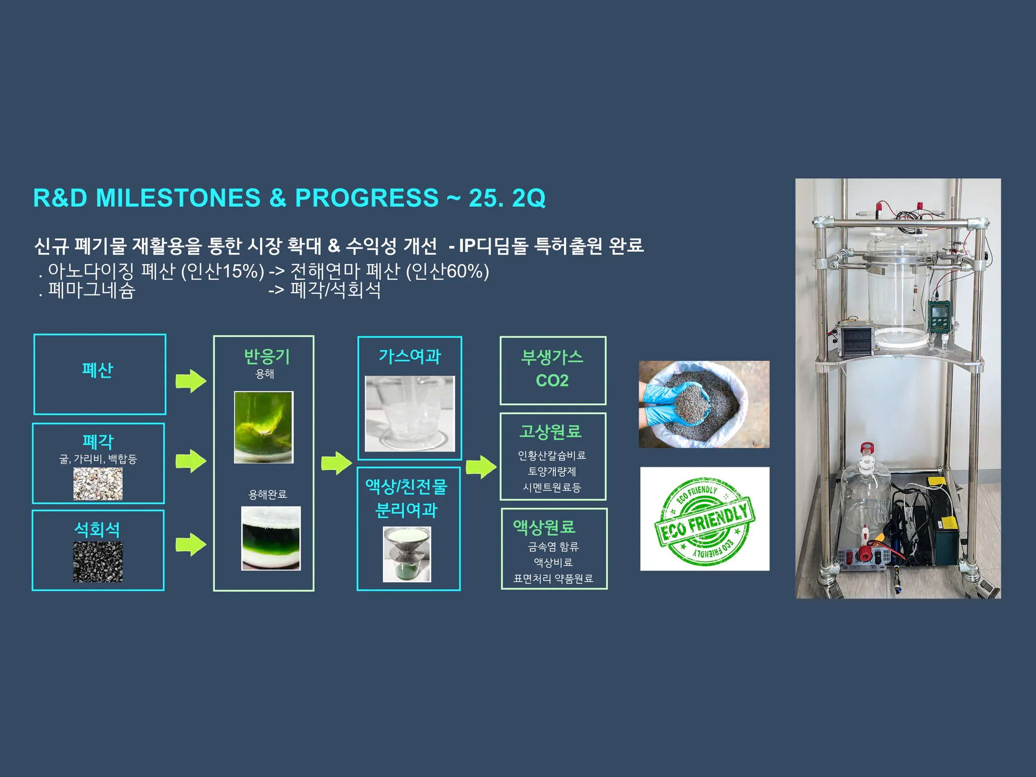 굴 양식 확대에 따른 폐패각과 반도체·PCB·디스플레이·표면처리 산업의 폐산 증가에 대응하여, 처리 비용 절감과 자원순환 기반 탄소 감축을 동시에 구현합니다.