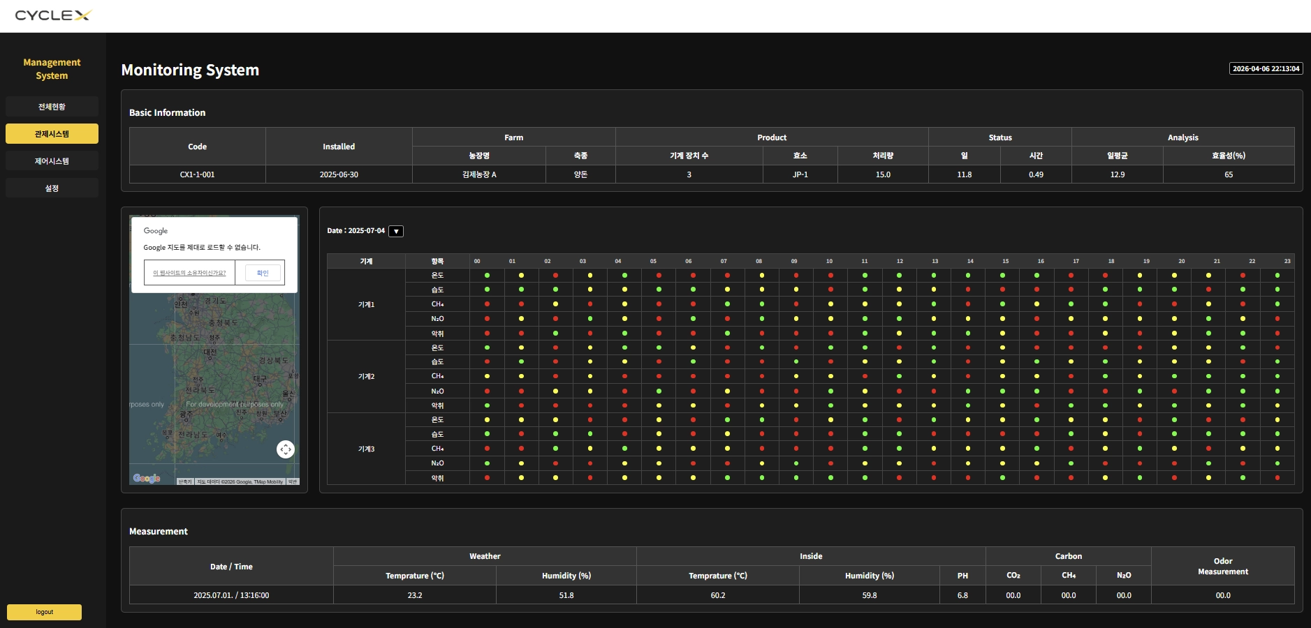 또한 IoT 센서(온·습도, 탄소량 등)를 통해 정량적 데이터를 분석하고, 가축분뇨 분해 효율화를 위한 최적 알고리즘을 기반으로 기후변화에 따라 가축분뇨 처리장치를 자율 제어합니다.