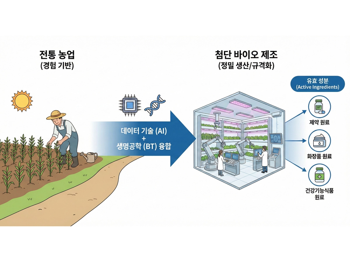 식물 생리학 지식(Symbolic)과 딥러닝(Neuro)을 결합해 데이터 희소성을 해결하고, 비파괴 센싱으로 식물 상태를 실시간 추론하여 성분을 극대화하는 '동적 처방'을 내립니다.