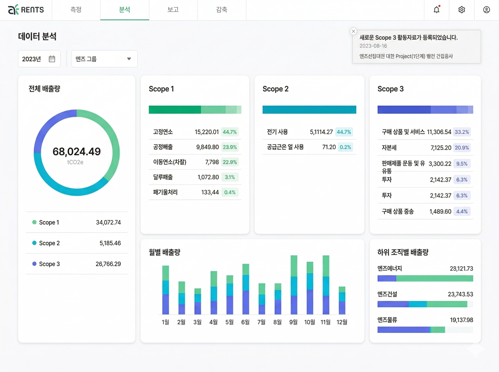 탄소 데이터를 단순 통계가 아닌 경영 의사결정 자산으로 전환하여 실질적인 감축 전략 수립까지 지원합니다.