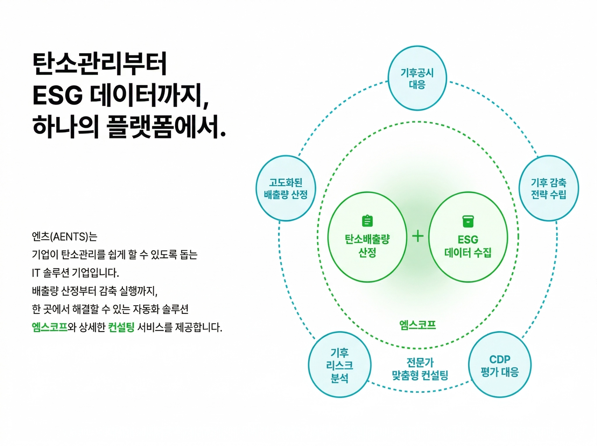 기후공시 의무화 시대, 엔스코프는 데이터 기반 탄소 경영이 기업의 경쟁력이 되는 세상을 만들어갑니다.