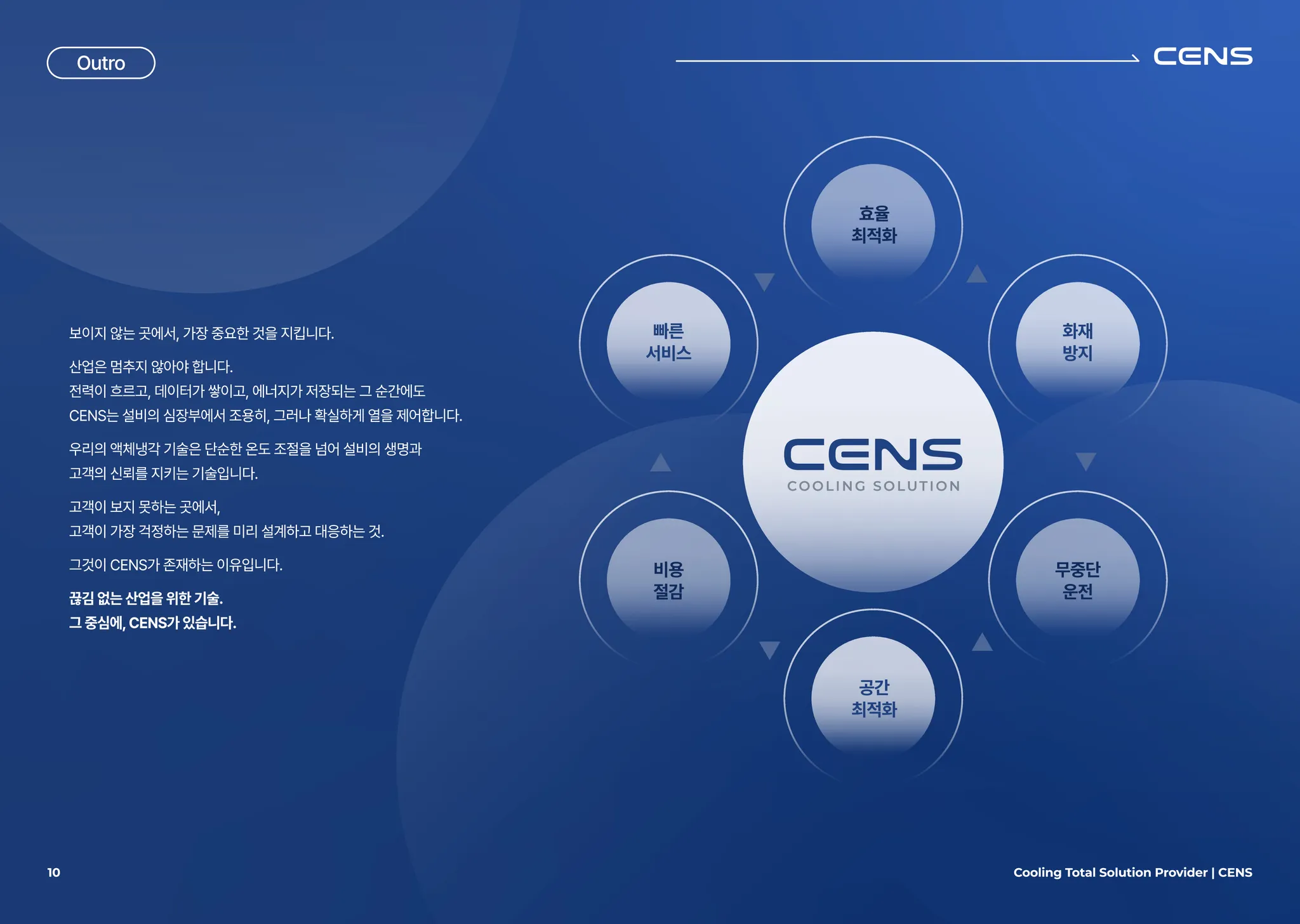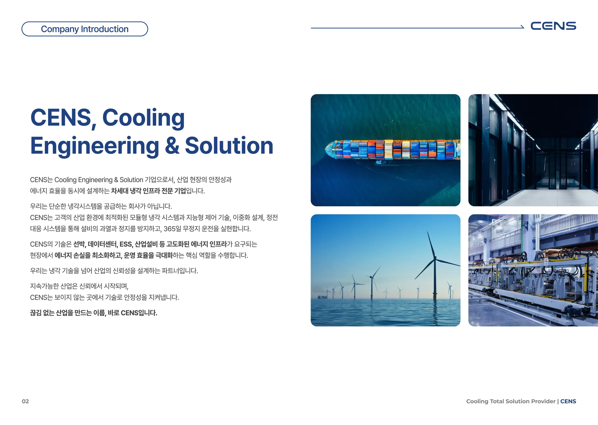 CENS는 산업 현장의 안정성과 에너지 효율을 동시에 설계하는 차세대 냉각 인프라 전문 기업입니다.