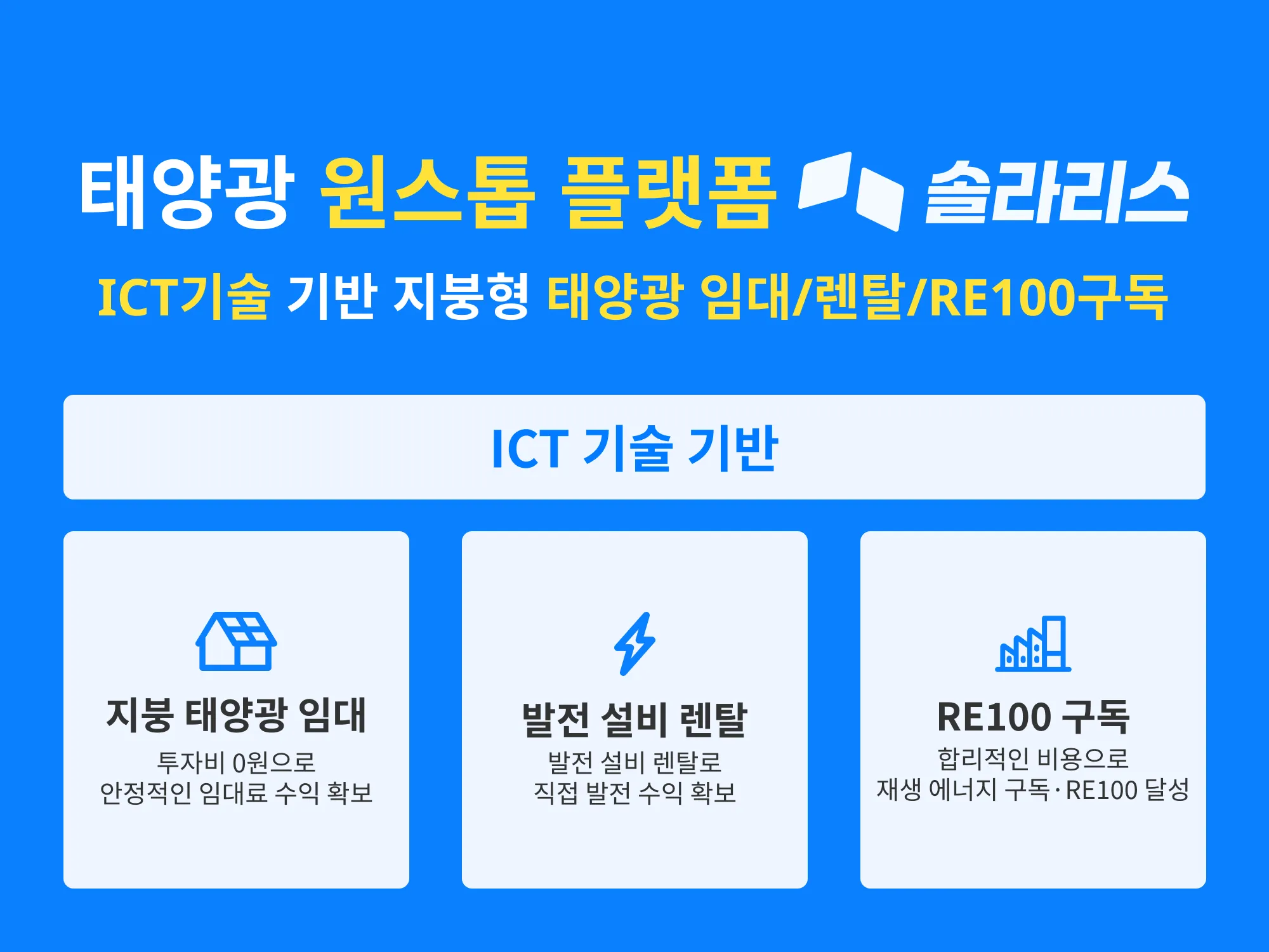 ICT 기술 기반 지붕형 태양광 임대/렌탈/RE100구독 원스톱 플랫폼 ‘솔라리스(Solar Lease)’