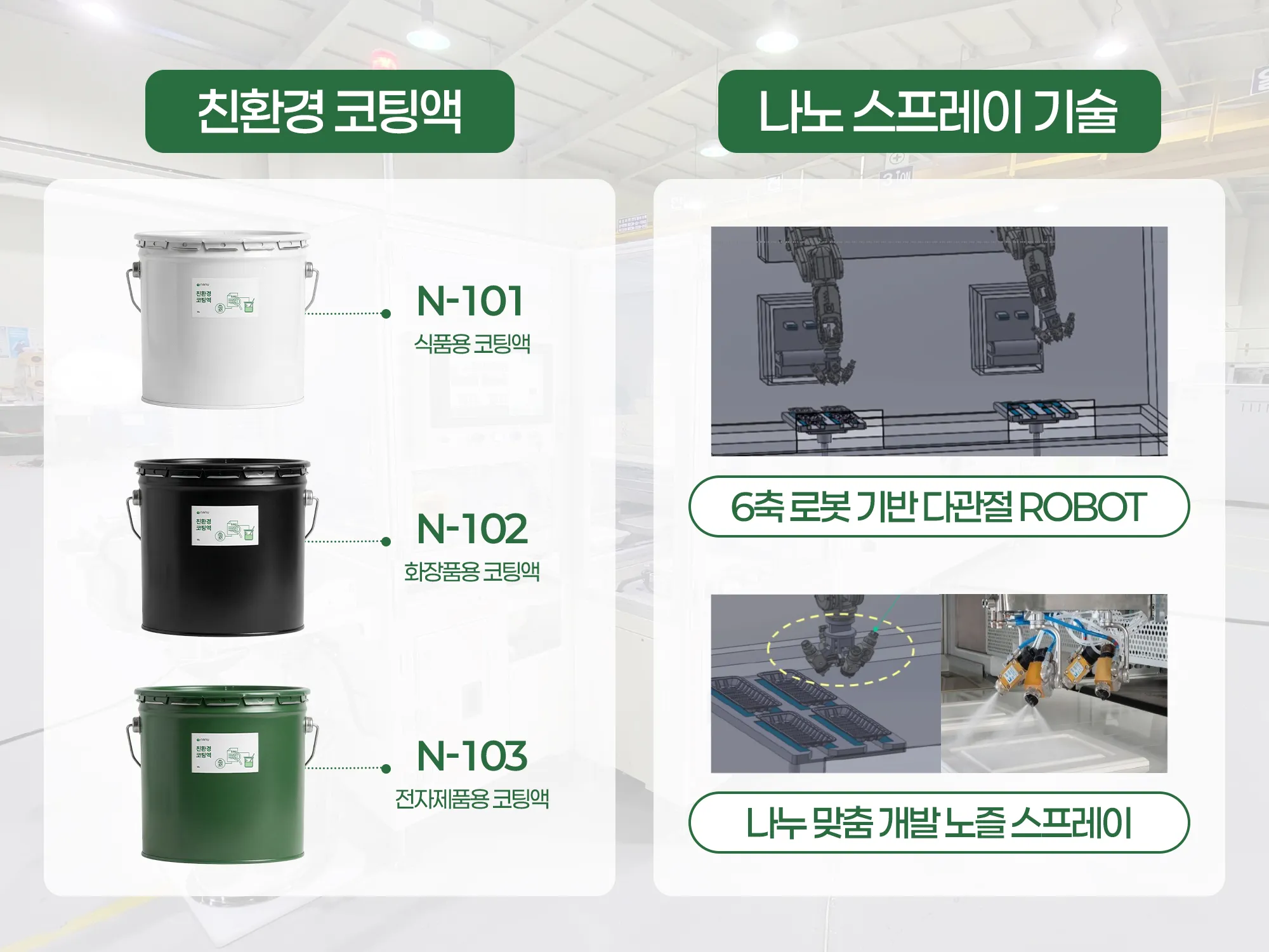 또한 친환경 코팅액을 분사하여 표면별 치밀한 특성을 구현함으로써 포장 품질을 향상시킵니다.