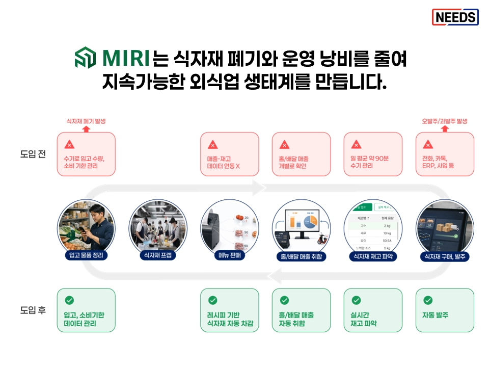 니즈는 외식업 운영의 비효율과 식자재 낭비를 줄이는 것을 가장 중요한 가치로 생각합니다.