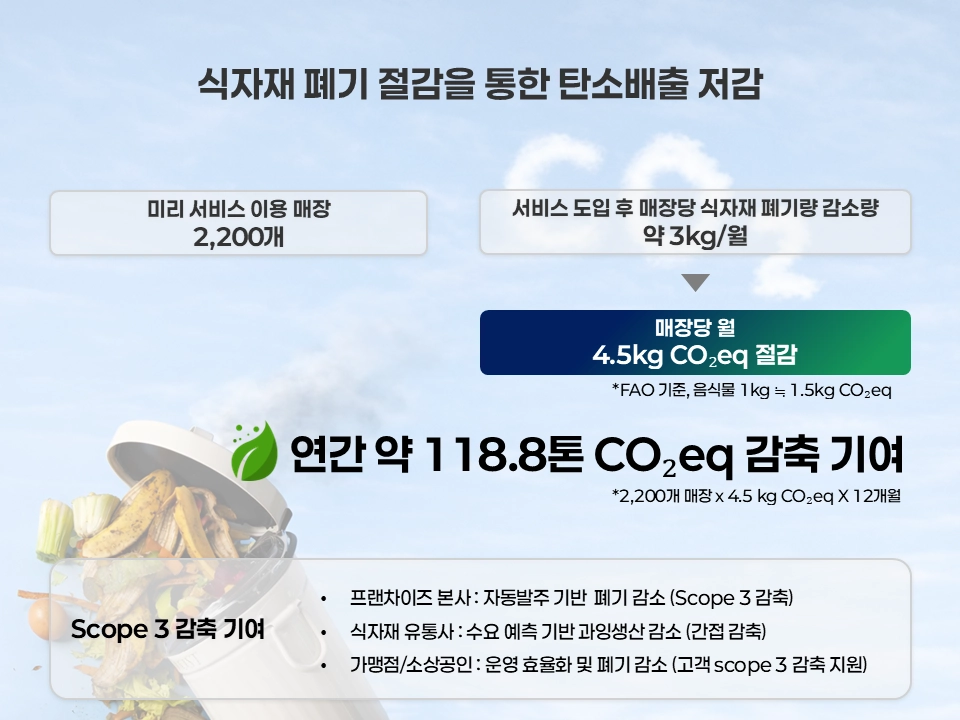 또한 미리는 단순히 매장 내부 운영 효율화에 그치지 않고 공급망 전반의 Scope 3 감축에도 기여합니다.