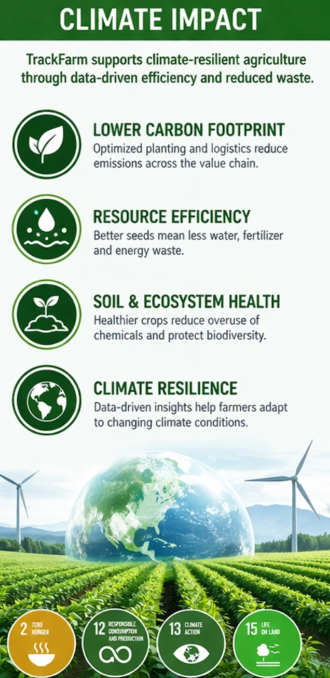 생산 효율 향상은 토지, 물, 에너지 사용량 절감으로 이어지며 탄소배출 감소에도 기여할 수 있습니다.