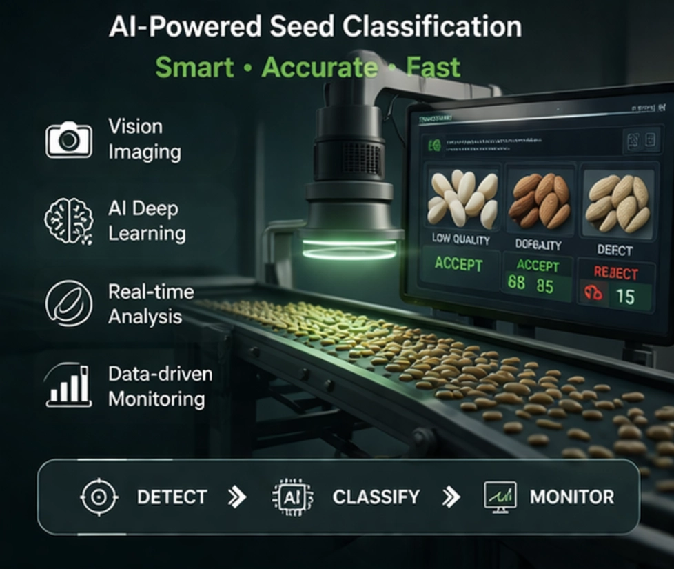 종자 판별기는 비파괴 방식으로 종자의 발아율, 활력도, 병리 상태 및 오염 여부를 분석하여 파종 전 최적의 종자를 선별합니다. 이를 통해 기존 샘플 검사 방식의 한계를 극복하고 전수 검사가 가능합니다.